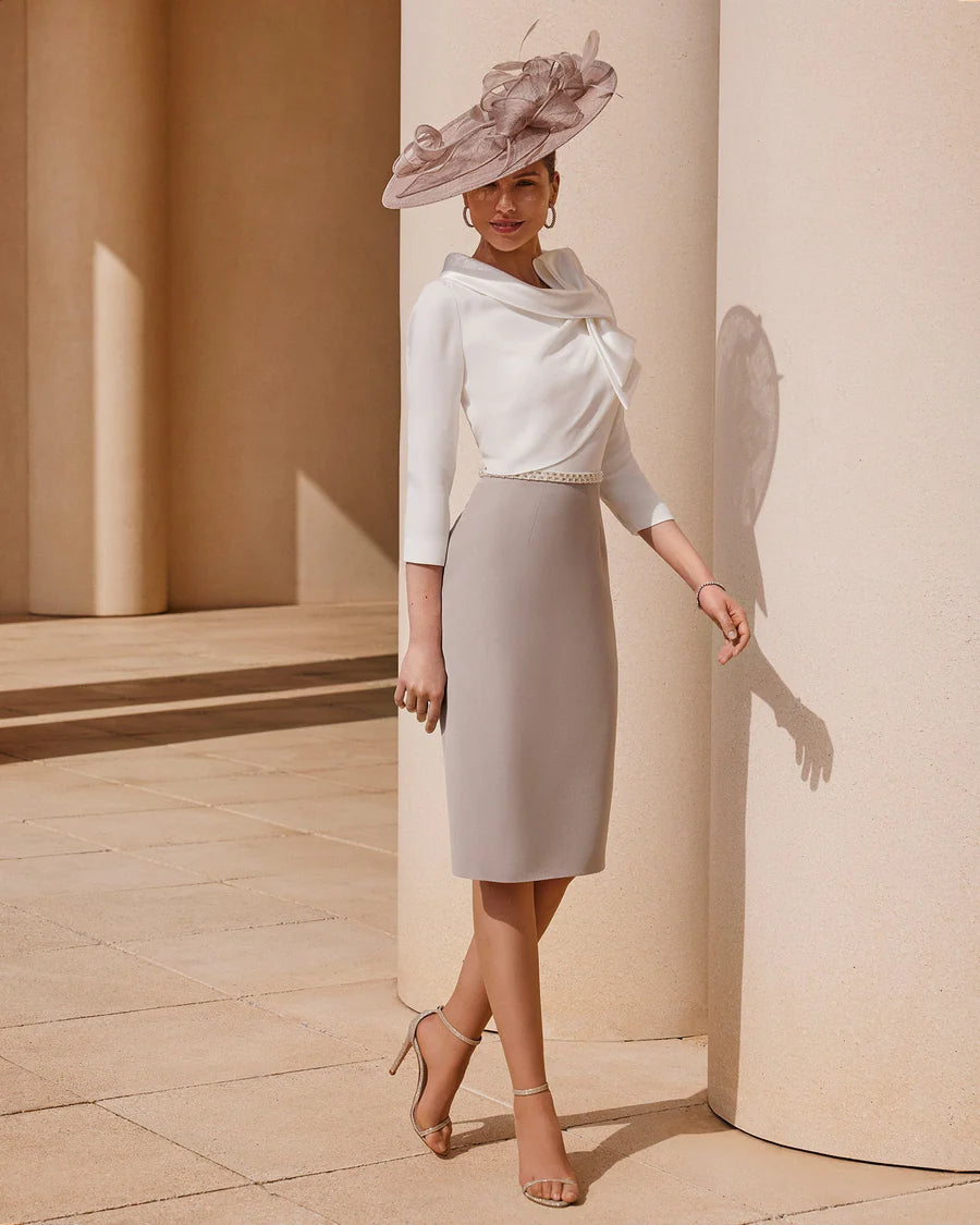 Elegante vestido bicolor, efecto camisa y falda.